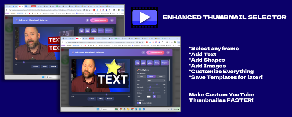 That’s exactly why I made Enhanced Thumbnail Selector. It’s a Chrome extension that doesn’t disrupt the process of uploading your video. And once you set up a template or two, you can be done in just a few short clicks.